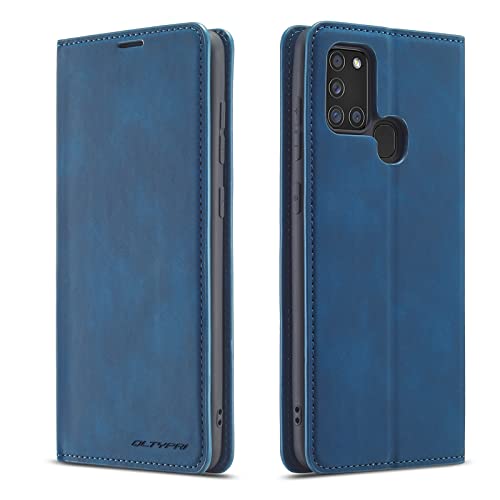 UEEBAI Coque pour Samsung Galaxy A21S, Etui en Cuir PU Portefeuille Rétro Antichoc Flip Case Housse avec Fentes de Cartes Fonction Support, Fermeture Magnétique - Bleu