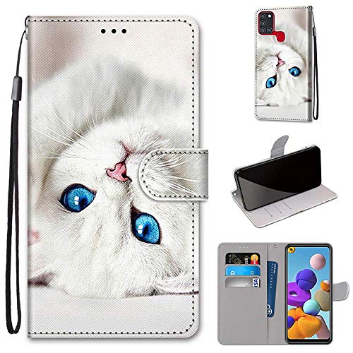SATURCASE Coque pour Samsung Galaxy A21S, Beau PU Cuir Magnétique Flip Portefeuille Support Porte-Carte Dragonne Protecteur Housse Étui pour Samsung Galaxy A21S (DK-5)