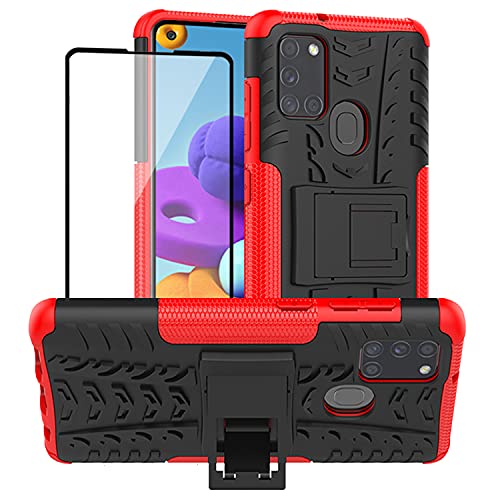 Yiakeng Coque pour Samsung Galaxy A21s, Galaxy A21s Coque, et D'écran Protecteur, Silicone Antichoc Full Protection avec béquille pour Samsung Galaxy A21s (Rouge)