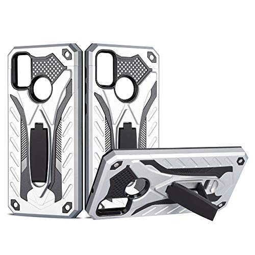 MILAN NICE Coque pour Samsung Galaxy A21s Bumper Etui de Protection Antichoc Anti-Rayure Dur PC Case Couverture en Silicone Souple Impact et Support Kickstand (Argent)