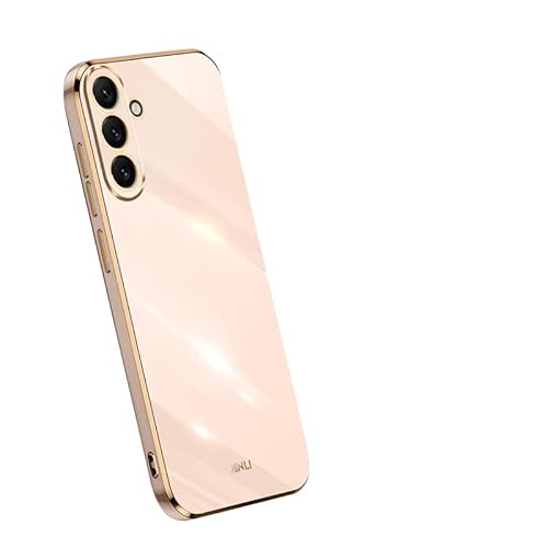 BRAINS Coque pour Samsung Galaxy A34 5G, TPU Antichoc Silicone [ Galvanisé Cadre Or ] Protection Pochette -Rose
