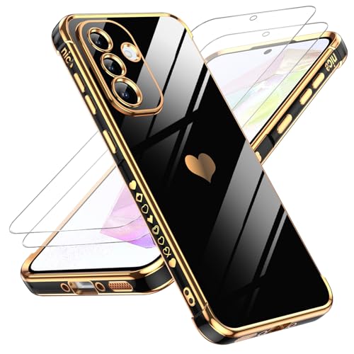 LeYi Coque pour Samsung Galaxy A36/A 36 avec 2 Verre Trempé Silicone Forme de Coeur d'amour, Housse Étui de Protection Antichoc Anti-Rayures Souple TPU Légère Coque Samsung A36- Noir
