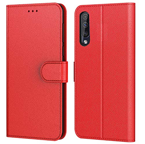 Tenphone Etui Coque pour Samsung Galaxy A50, Protection Housse en Cuir PU Portefeuille Livre,[Emplacements Cartes],[Fonction Support],[Languette Magnétique] pour (Samsung A50 (6,4"), Rouge)