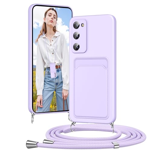 Vauki Coque pour Samsung Galaxy S20FE avec Cordon, Collier pour Étui en Silicone avec Cartes Tour de Cou Lanière Corde, Portable, Réglable, Amovible, Antichoc Housse pour Chaine, Violet