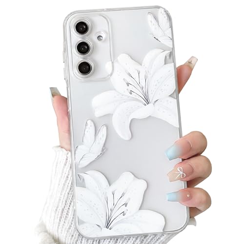 NITITOP Coque pour Samsung Galaxy S23FE Mignonne Transparente Fleur de Lys Floral et Papillon Motif Clair Aesthetic pour Femmes Fille Doux TPU Antichoc Housse de Protection - Blanc