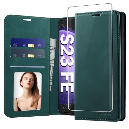 Cracedily Coque pour Samsung Galaxy S23 FE Pochette, Housse en Cuir PU Premium, Etui à Rabat, Pochette de Portefeuille, Antichoc, RFID Blocage Étui de Protection pour Galaxy S23FE, Bleu Vert
