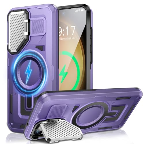 OLHAOMAO Coque avec Caméra Support pour Samsung Galaxy S23 FE [Compatible Mag][Protection Camera] Case de Antichoc Militaire, Etui de Protection pour S23fe 6.4‘’ pour Hommes (Violet)