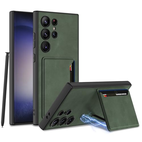 COQUE Étui pour Samsung S24 Ultra, Arrière en Cuir TPU avec Porte-Carte Magnétique pour Samsung Galaxy S24 Ultra 5G-Vert