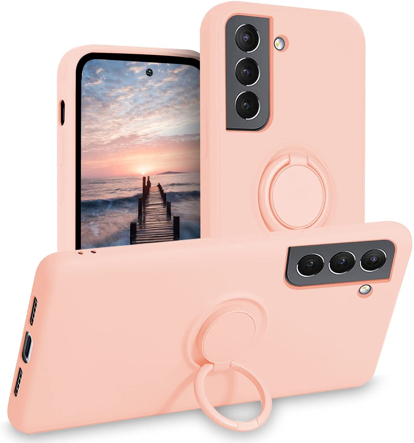Coque Silicone Pour Samsung S21 5G Couleur Rose Avec Anneau Support Little Bouti