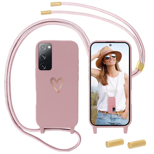 Coque pour Samsung Galaxy S20 FE 4G/5G avec Cordon, MoEvn Coque Collier Motif Coeur d'amour Silicone Liquide Bumper Housse pour Samsung S20 FE Etui avec Collier Réglable Chaîne Lanyard Case, Rose