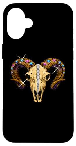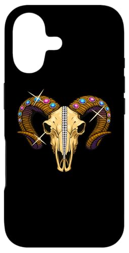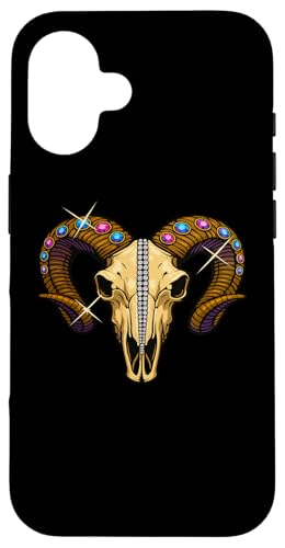 Illustration crâne de bélier clouté avec Strass Coque pour iPhone 16 Plus