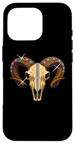 Illustration crâne de bélier clouté avec Strass Coque pour iPhone 16 Pro