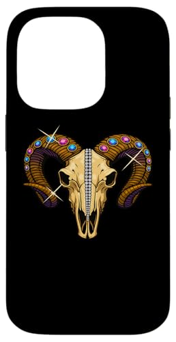 Illustration crâne de bélier clouté avec Strass Coque pour iPhone 14 Pro