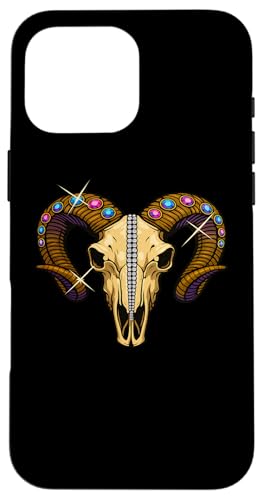 Illustration crâne de bélier clouté avec Strass Coque pour iPhone 16 Pro Max