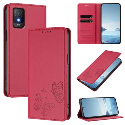Topme Étui en Cuir pour TCL 403 (6" inches), [ Coque de Téléphone Série Motif Litchi Simple] - Rouge
