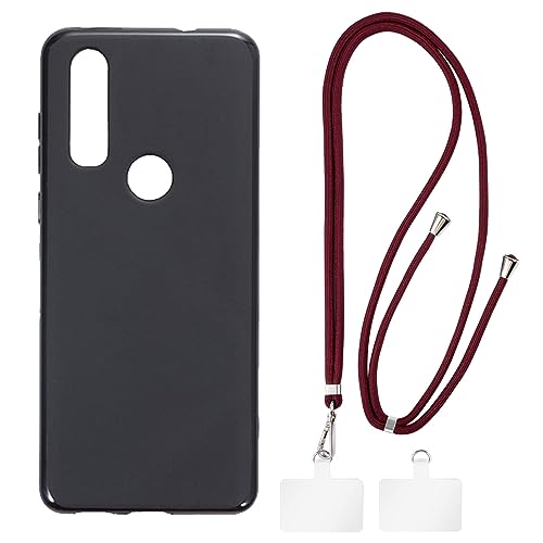 Shantime Coque et Lanière Bandoulière Compatible avec Motorola Moto One Action P40 Power Coque de Téléphone et Sangle de Cou Réglable avec Boucles Métalliques et 2 Patchs(Noir + Rouge)