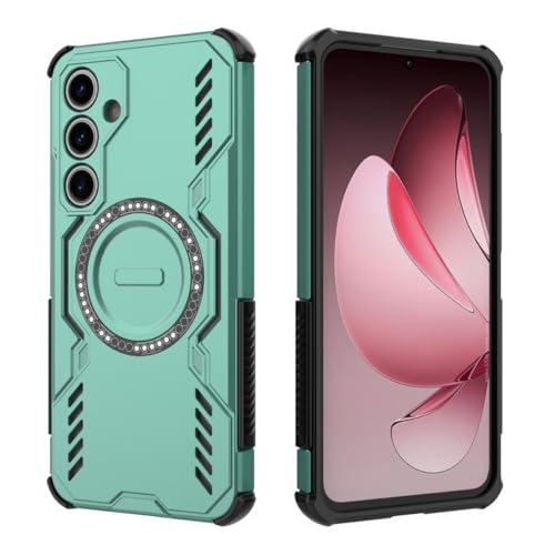 HULLIN Coque Téléphone Design pour Samsung Galaxy S24 FE (6.7" inches), Étui Antichoc Armure avec Bague Magnétique - Vert