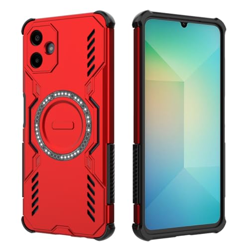 HULLIN Coque Téléphone Design pour Samsung Galaxy A06 (6.7" inches), Étui Antichoc Armure avec Bague Magnétique - Rouge