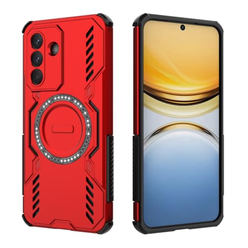 HULLIN Coque Téléphone Design pour Honor Magic6 Lite 5G (6.78" inches), Étui Antichoc Armure avec Bague Magnétique - Rouge