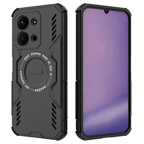 HULLIN Coque Téléphone Design pour Honor X8c (6.7" inches), Étui Antichoc Armure avec Bague Magnétique - Noir