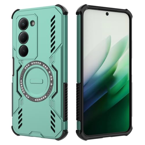 HULLIN Coque Téléphone Design pour POCO F7 (6.83" inches), Étui Antichoc Armure avec Bague Magnétique - Vert