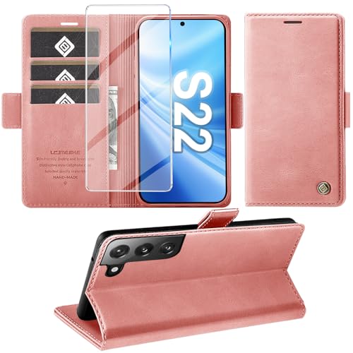 KOGENG Coque pour Samsung Galaxy S22, Magnétique Housse en Cuir PU Premium Etui à Rabat, Pochette de Flip Portefeuille Antichoc Coque Protection Telephone pour Samsung S22 5G Case (Rose)