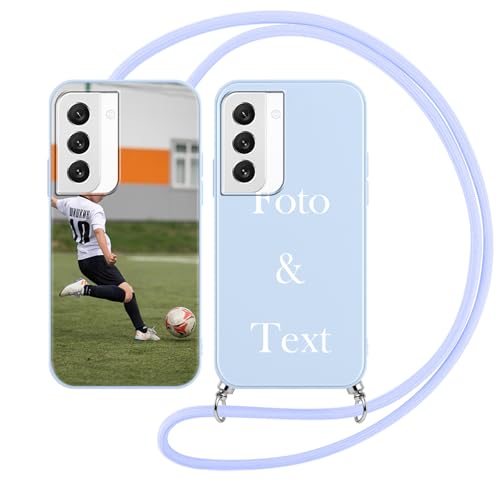 Yoedge Coque Personnalisée avec Cordon pour Samsung Galaxy S22 5G Personnalisable 6,1", Étui Colliers Housse Personnaliser Custom avec Photo Image Texte Nom Bleu Telephone Cover pour Samsung S22 5G
