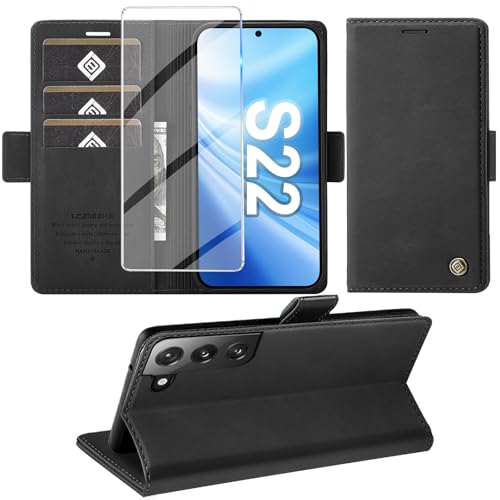 KOGENG Coque pour Samsung Galaxy S22, Magnétique Housse en Cuir PU Premium Etui à Rabat, Pochette de Flip Portefeuille Antichoc Coque Protection Telephone pour Samsung S22 5G Case (Noir)