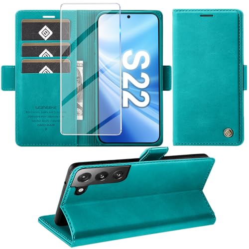 KOGENG Coque pour Samsung Galaxy S22, Magnétique Housse en Cuir PU Premium Etui à Rabat, Pochette de Flip Portefeuille Antichoc Coque Protection Telephone pour Samsung S22 5G Case (Cyan)