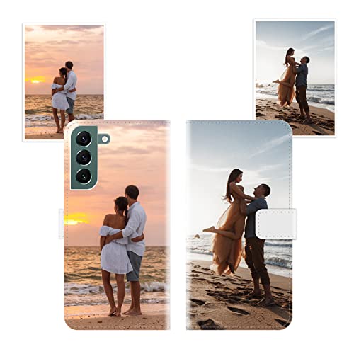 Sunrive Coque personnalisée Compatible avec Samsung Galaxy S22 5G, Personnalisable avec Votre Propre Image,Photo,Texte,DIY Leather Housse Étui PU Cuir + Tour de Cou Telephone Universelle