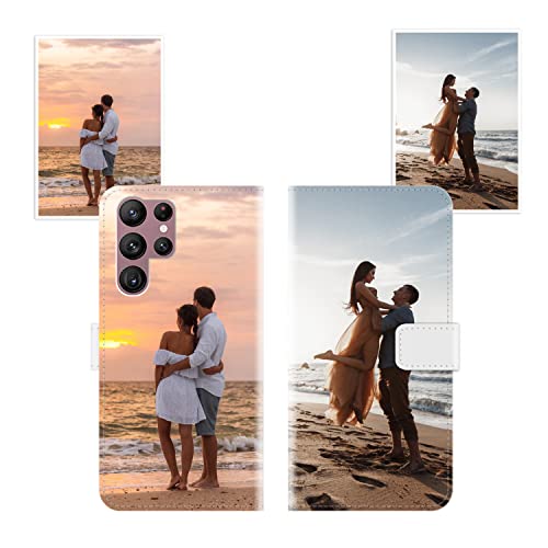 Sunrive Coque personnalisée Compatible avec Samsung Galaxy S22 Ultra 5G, Personnalisable avec Votre Propre Image,Photo,Texte,DIY Leather Housse Étui PU Cuir + Tour de Cou Telephone Universelle