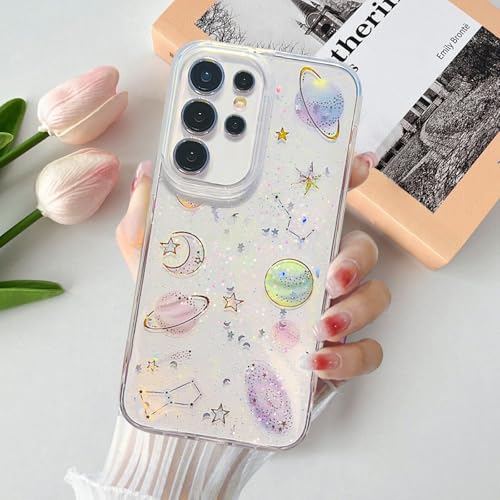 BEENTRYS Coque Transparente Pailletée pour Samsung Galaxy S22 Ultra Coque,Mignon Motif Planètes Étoile Housse de Telephone Femme Fille TPU Souple Antichoc Étui de Protection-Clair