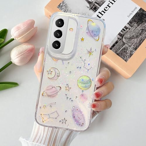 BEENTRYS Coque Transparente Pailletée pour Samsung Galaxy S22 Coque,Mignon Motif Planètes Étoile Housse de Telephone Femme Fille TPU Souple Antichoc Étui de Protection-Clair