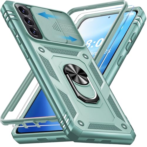 KOGENG Coque pour Samsung Galaxy S22 avec Verre Trempé, 360° Antichoc Étui de Militaire Protection Anneau Support Renforcée Armure Telephone Housse pour Samsung S22 5G Case (Vert Menthe)