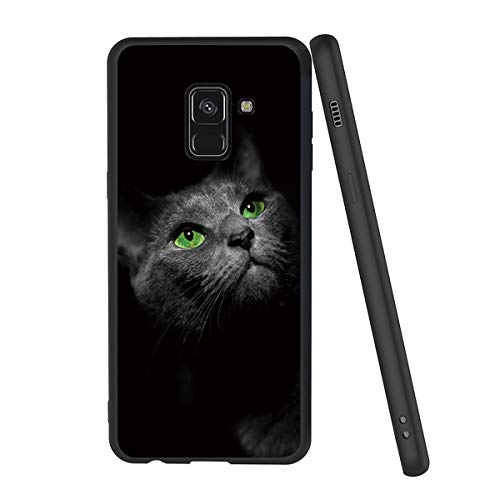 Yoedge Coque pour Samsung Galaxy A8 2018, Etui en Silicone avec Noir Motif Design Antichoc Housse de Protection Flim TPU Gel Case Cover Coque pour Telephone Galaxy A8 2018 5,6 Pouces, Chat