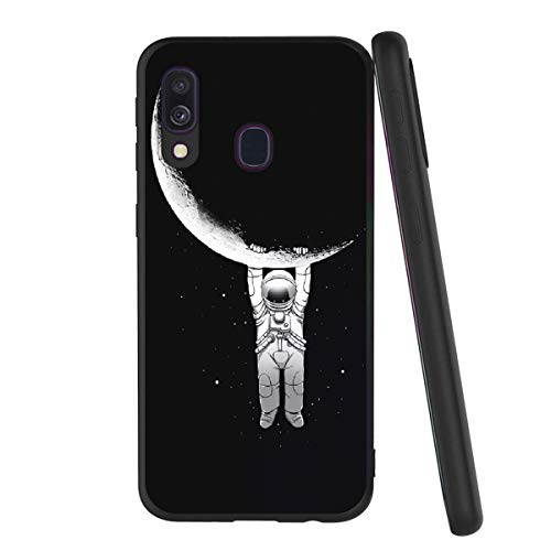 Yoedge Coque pour Samsung Galaxy A40, Etui en Silicone avec Noir Motif Design Antichoc Housse de Protection Flim TPU Gel 360 Case Cover Coque pour Telephone Samsung Galaxy A40 5,9 Pouces, Lune