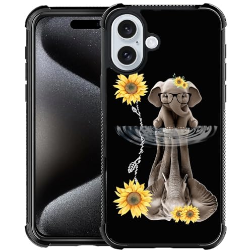 CARLOCA Coque Compatible avec iPhone 16, Coques de Protection pour iPhone 16, Motif éléphant, Tournesol pour Filles et garçons, Design Graphique Tendance, Coque de Protection Antichoc et Anti-Chute