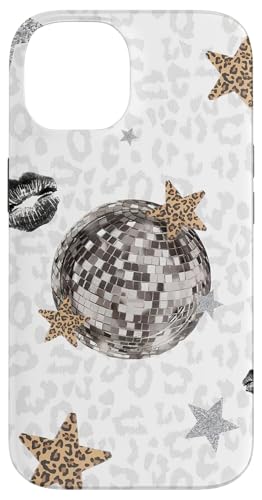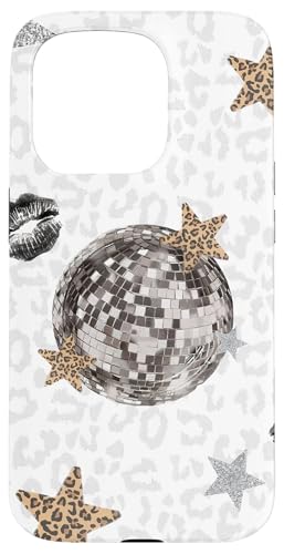 Boule disco motif léopard blanc gris guépard mignon tendance Coque pour iPhone 15 Pro