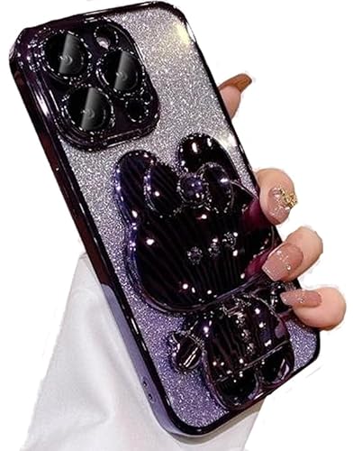 Coque à Paillettes pour iPhone 16 Pro Max pour Femmes et Filles, Joli Lapin caché avec Miroir et béquille, placage de Luxe en TPU Souple avec Couche dégradée, Coque de téléphone Tendance pour iPhone