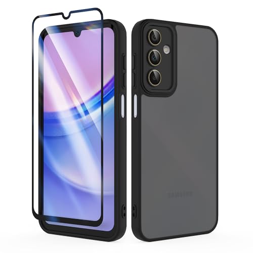 ESTH® Coque Transparente pour Samsung Galaxy A15 (4G/5G) Antichoc Housse Full Body Protection, Étui Antipoussière Incassable [avec Protecteur D'écran], Noir