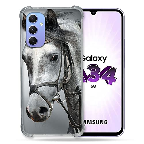 Coque Renforcée en Verre Trempé pour Samsung Galaxy A34 5G Animal Cheval Cristal