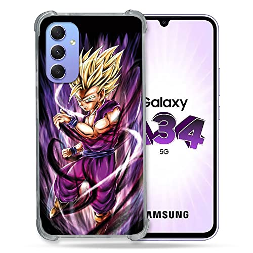 Cokitec Coque Renforcée en Verre Trempé pour Samsung Galaxy A34 5G Manga Dragon Ball Sangohan Violet
