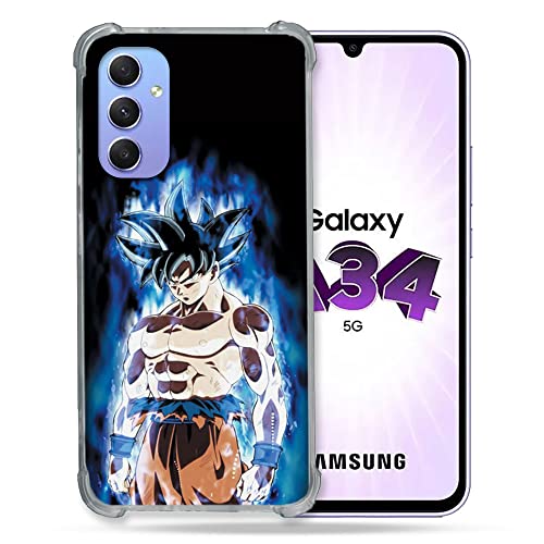 Cokitec Coque Renforcée en Verre Trempé pour Samsung Galaxy A34 5G Manga Dragon Ball Sangoku Noir