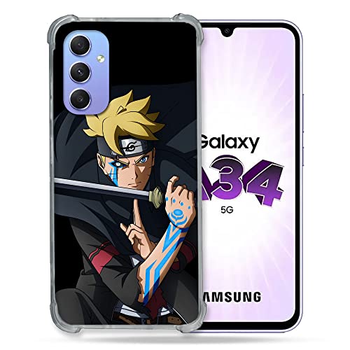 Cokitec Coque Renforcée en Verre Trempé pour Samsung Galaxy A34 5G Manga Boruto Tatouage
