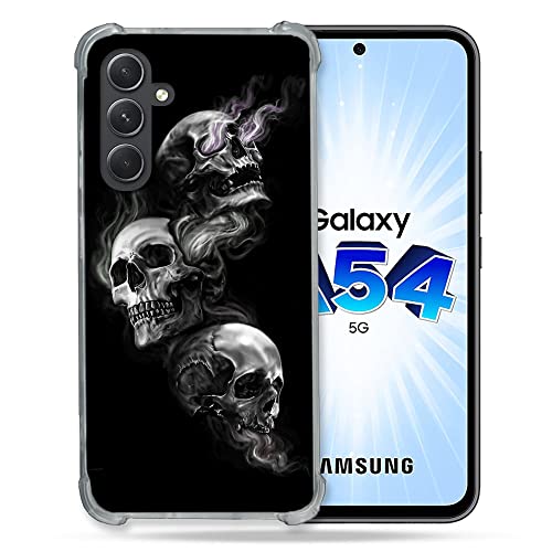 Cokitec Coque Renforcée en Verre Trempé pour Samsung Galaxy A54 5G Tete de Mort Triple