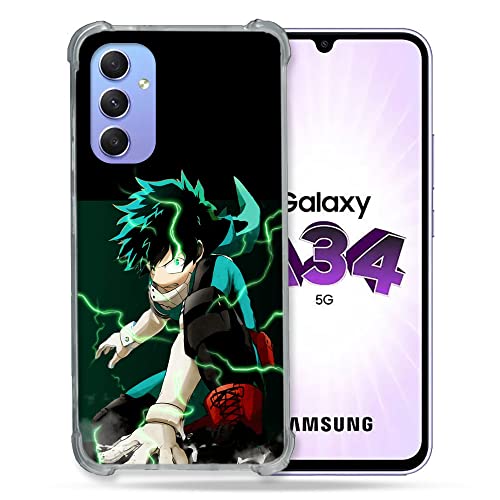 Cokitec Coque Renforcée en Verre Trempé pour Samsung Galaxy A34 5G Manga My Hero Academia Affiche