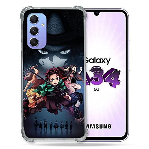 Cokitec Coque Renforcée en Verre Trempé pour Samsung Galaxy A34 5G Manga Demon Slayer Groupe