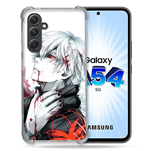 Cokitec Coque Renforcée en Verre Trempé pour Samsung Galaxy A54 5G Manga Tokyo Ghoul Kaneki Blanc