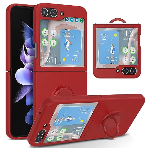 UEEBAI Silicone Coque avec Ring pour Samsung Galaxy Z Flip 5 5G, Etui Fin Pliable et léger Absorption des Chocs Housse Mince avec Bague 360 Degrés Rotation Stand Protection Cover, Rouge Thermique