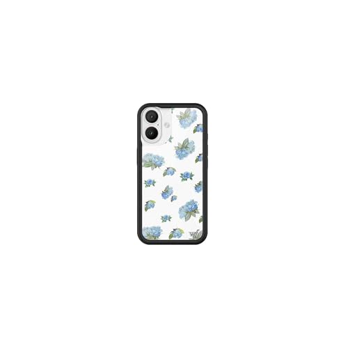Wildflower Coques – Rose Clair de Lune, Compatible avec Apple iPhone 16 | Floral Bleu Blanc délicat Mignon Tendance – Protection Pare-Chocs Noir, certifié Test de Chute de 1,2 m, certifié par des